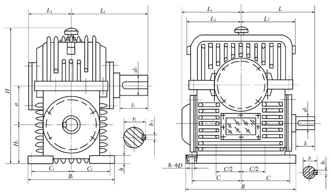 (2)PWO型—蜗杆在蜗轮之上平面二次包络环面蜗杆减速器;
